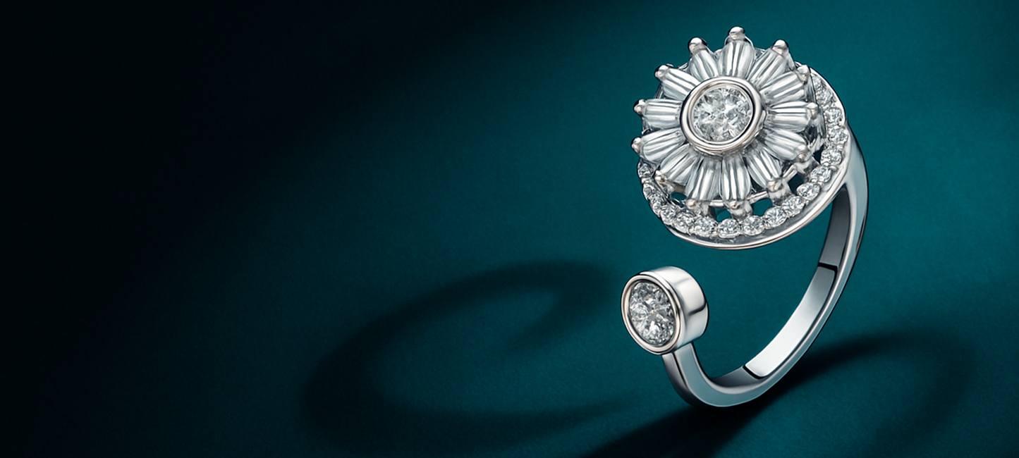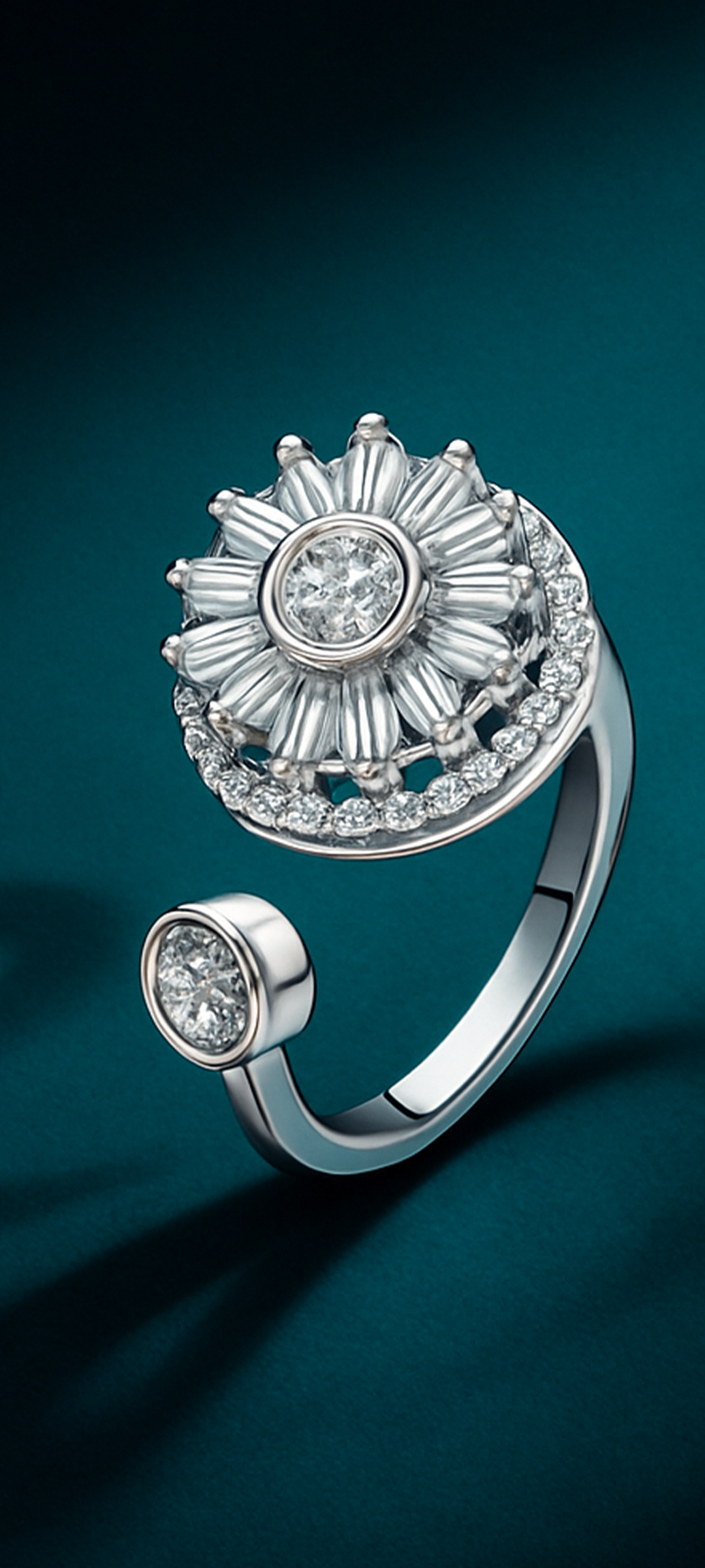 Each petal sparkles with refined detail, reflecting light from every angle to create a soft, luminous glow. Whether worn as a statement at dusk or as a subtle companion in daylight, the Bloom Crown Flower is more than jewellery — it’s a symbol of beauty in perpetual bloom.
